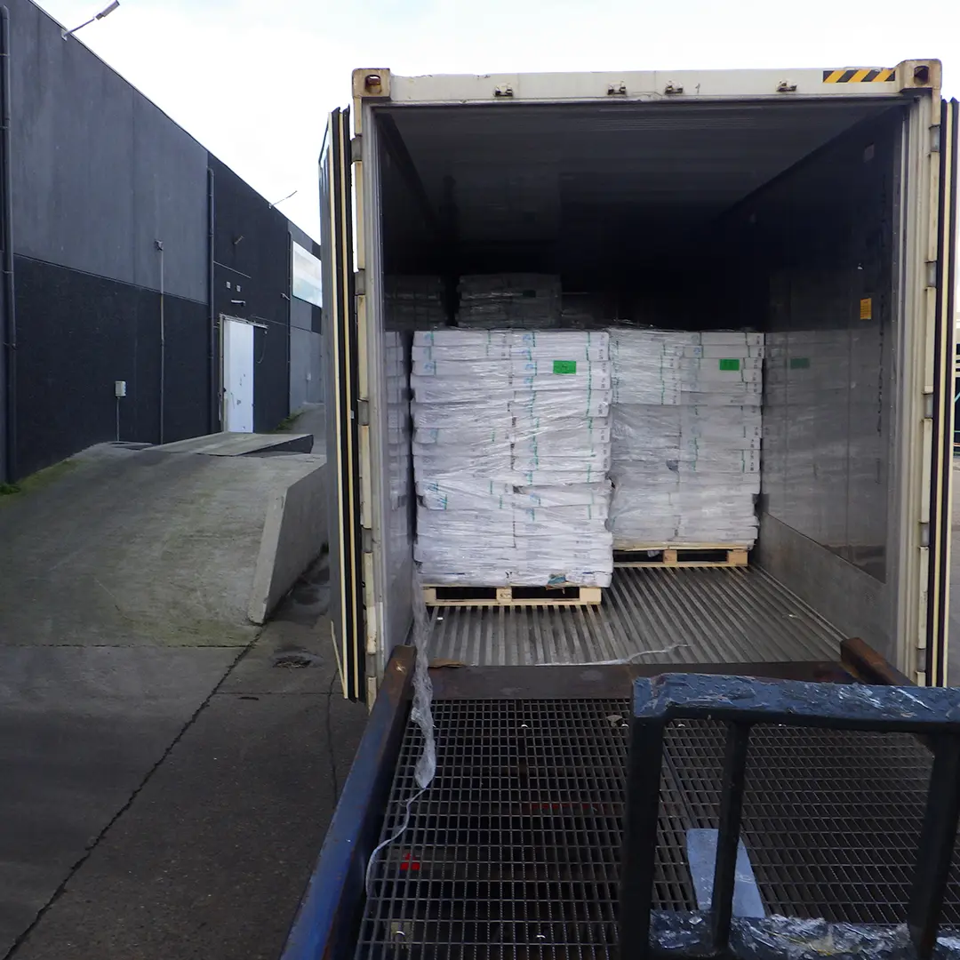 Ved modtagelse registrerer vi mængder og batchnumre, samtidig med at vi mærker pallerne med tydelig identifikation.
